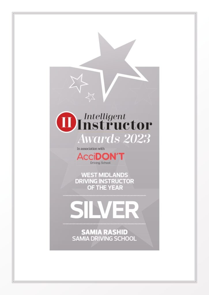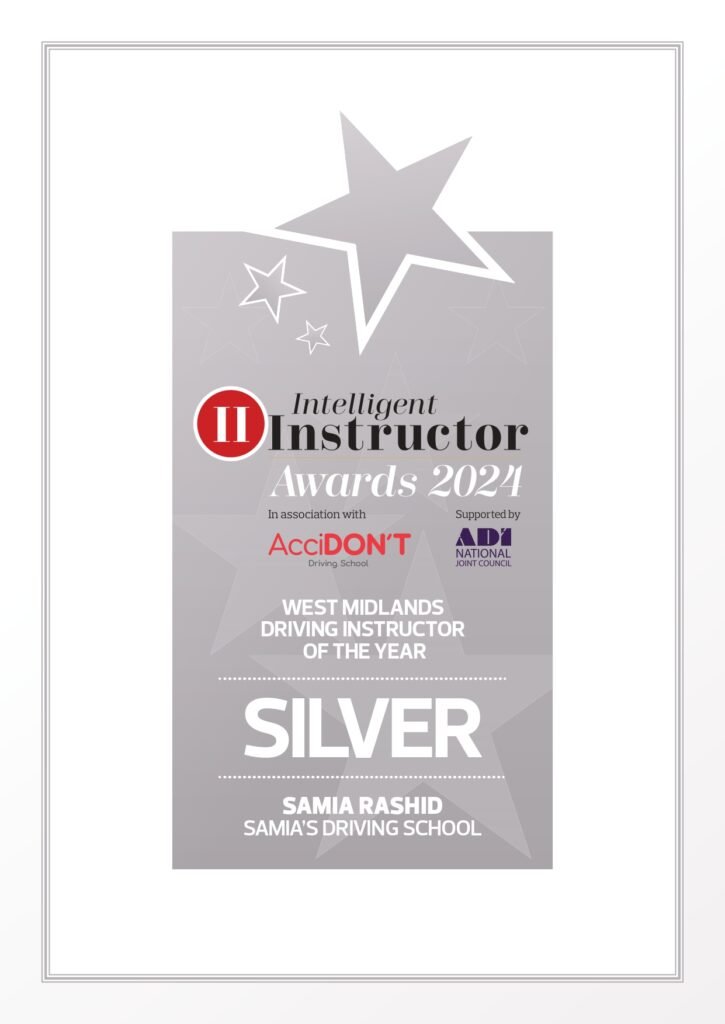 Anyone can teach you to turn a corner. Samia Rashid's BTEC Level 4 qualification in Driver Coaching means we develop your mindset for lifelong safe driving.